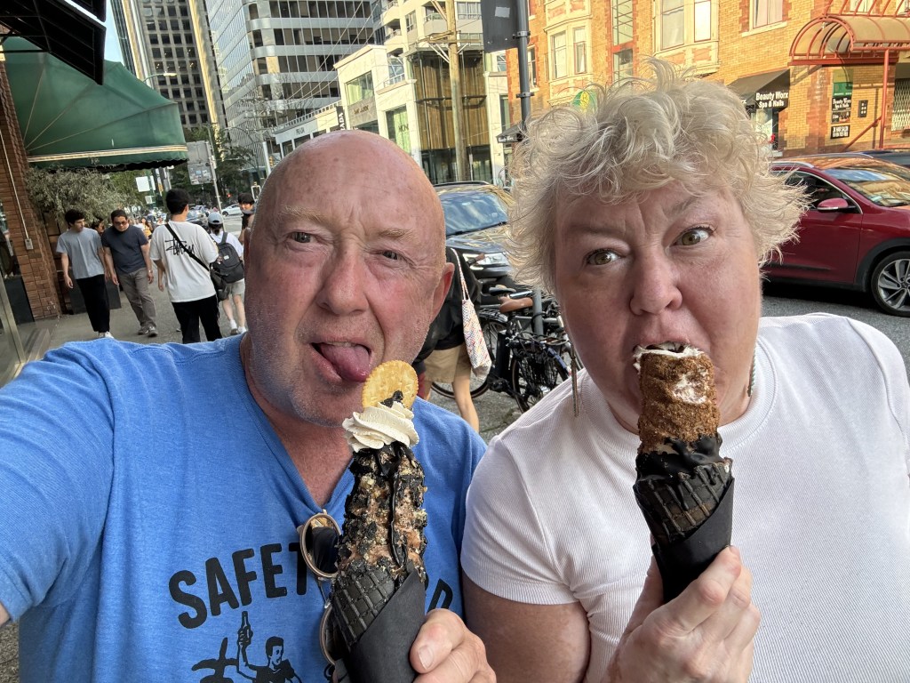 What a great place Vancouver is, good markets with fresh veggies, fish and meat. Chinese food to die for and amazing neighbors at the Campground. Justin and Sasha with their two young kids, live on the Canadian desert and escaped the heat for a week in Vancouver . Now for me Canada and desert is like Miami and snow , doesn’t go together . But voila , here we are sharing some amazing Dungeness Crabs , freshly caught that day from the bay . Great swimming water and even better for fishing and crabbing . Thanks guys , really hope to see you sometime in Florida!!