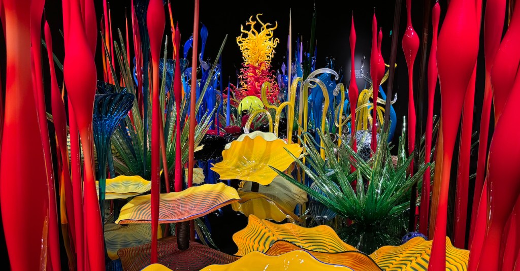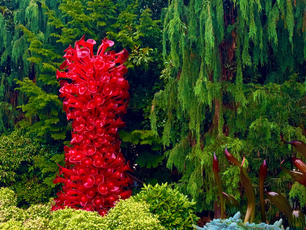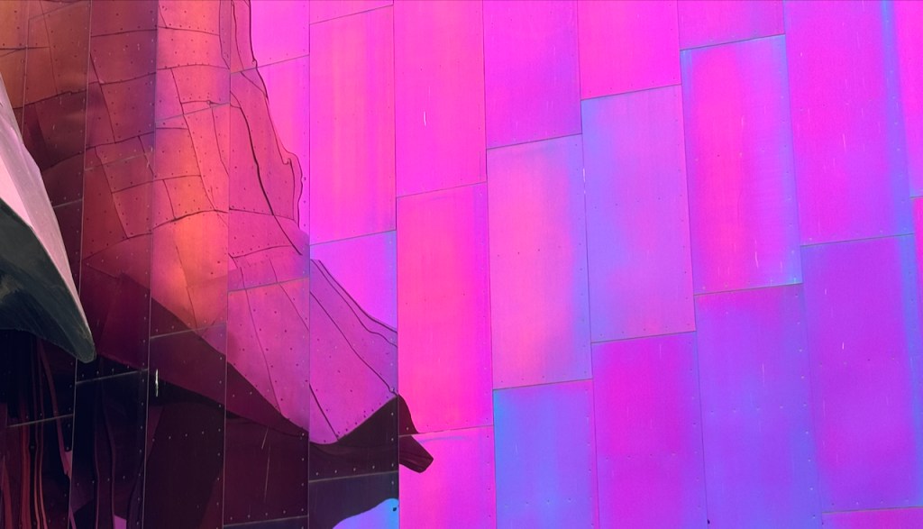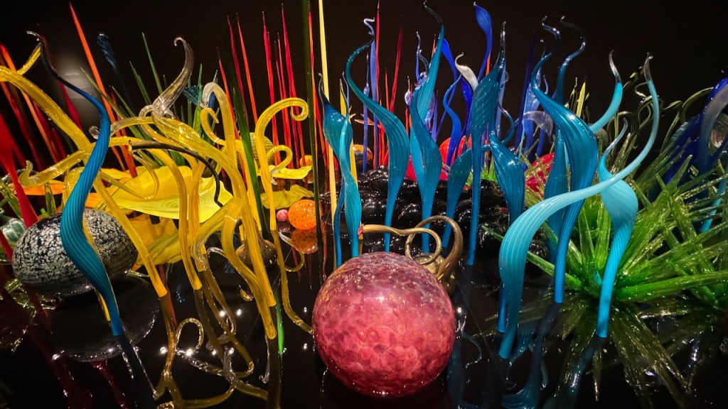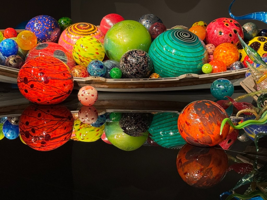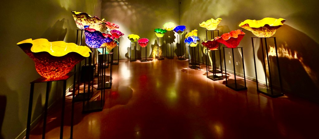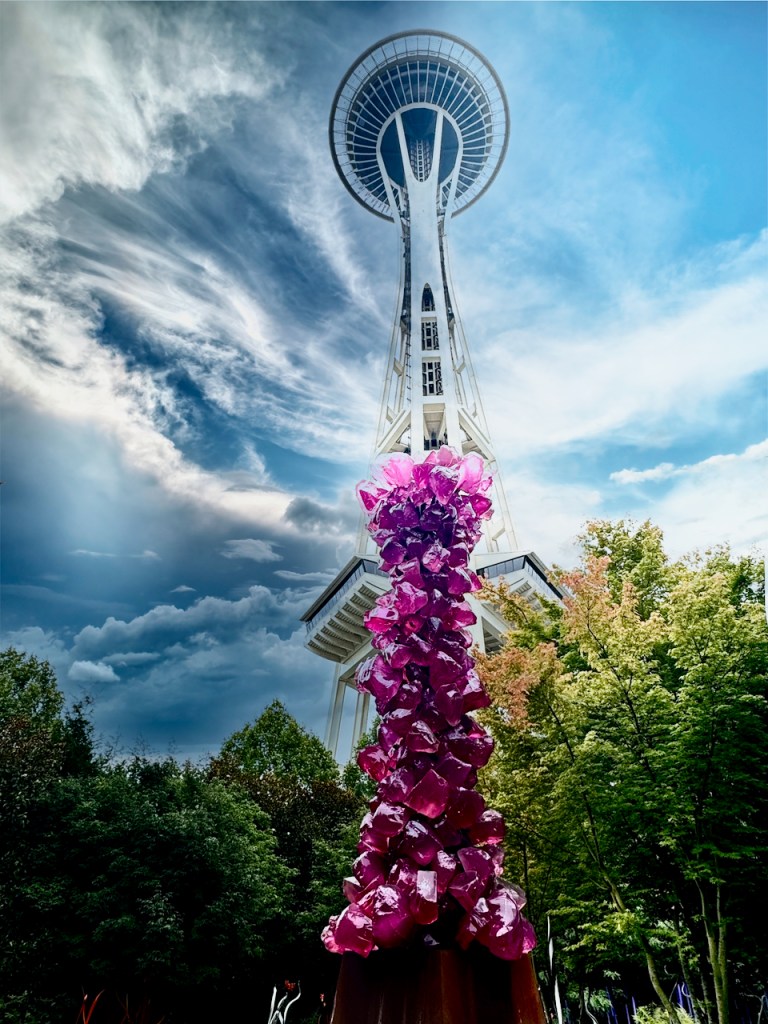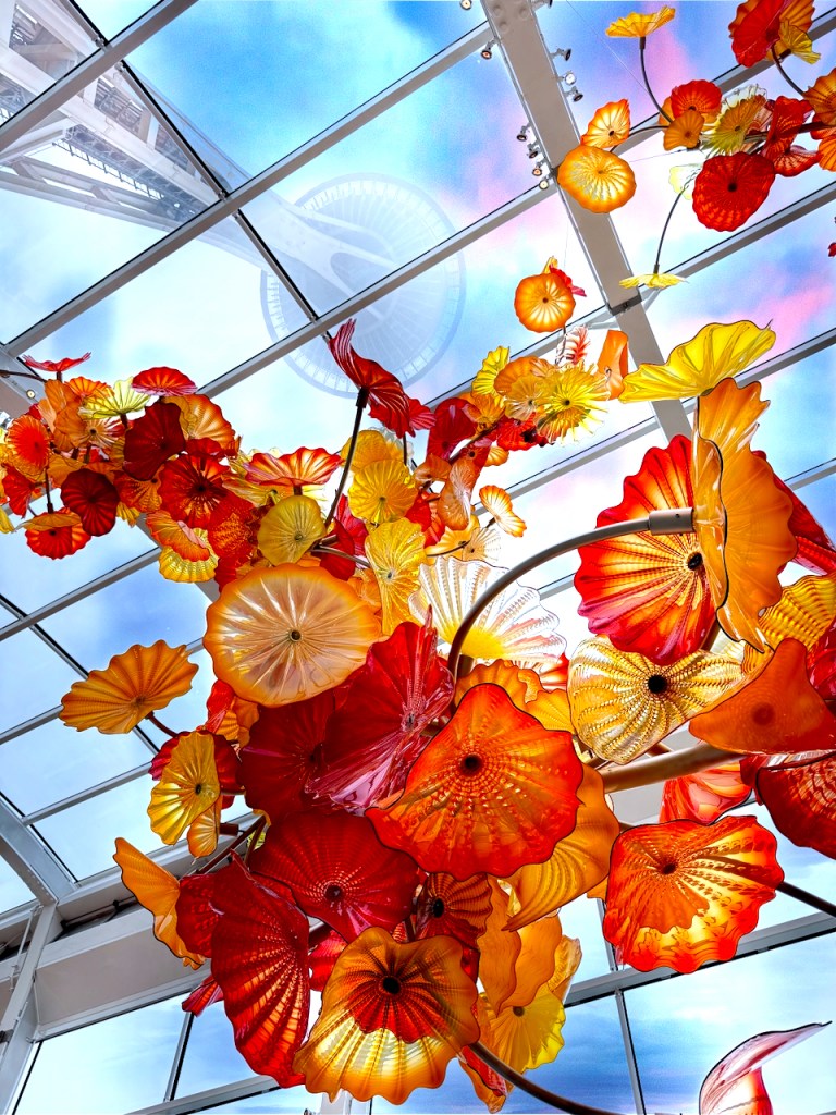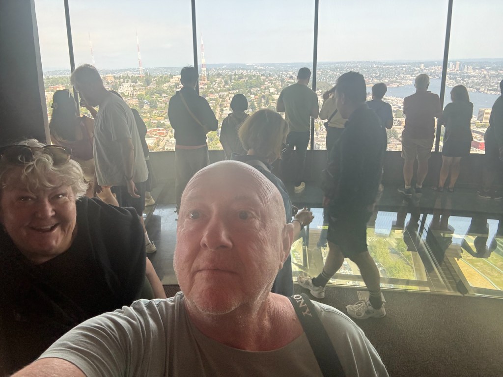 Quick 3-4 hour drive from Vancouver, Crossing the border,and setting up in Issaquah, WA. Headquarters of Costco and about 20 minutes from the sites in Seattle. Day 1 had the Space-needle ,Chihuli glass museum and impromptu visit to the pop museum??!!?? We had our ticket for 8:30 am at the needle, but as normal in Seattle n0 visibilty at the top. So we had a few hours to kill , first Chihuli which was amazing. we had seen the traveling exibit in Miami which was beautiful. This was even better , its permanent and beautifully laid out . so colorful and super expensive to buy. some small bowls were available , but 6-8000 dollars. take two !