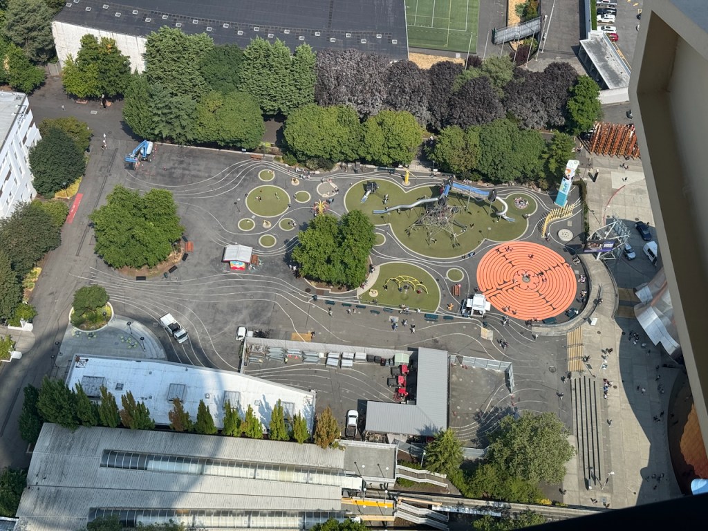 Finally it was getting clear and we stood in line for a bit to get a shot to visit space. Build for the 1962 worlds fair , it’s our Eifel Tower without the croissants , but with Pies !!. Worth the visit !!