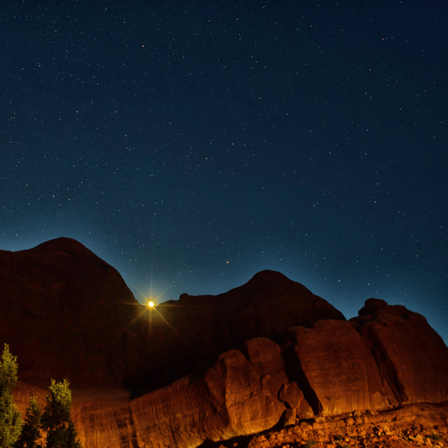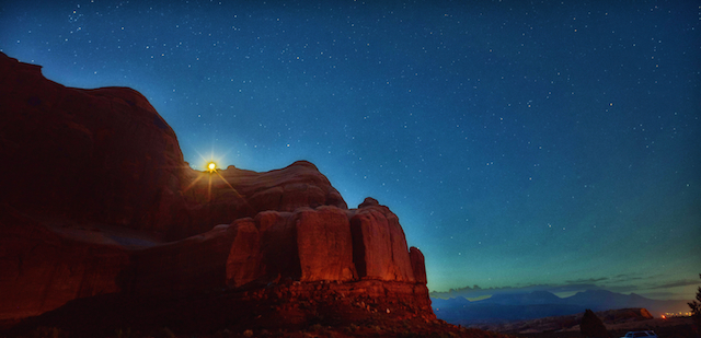 A golden glow breaks the night,